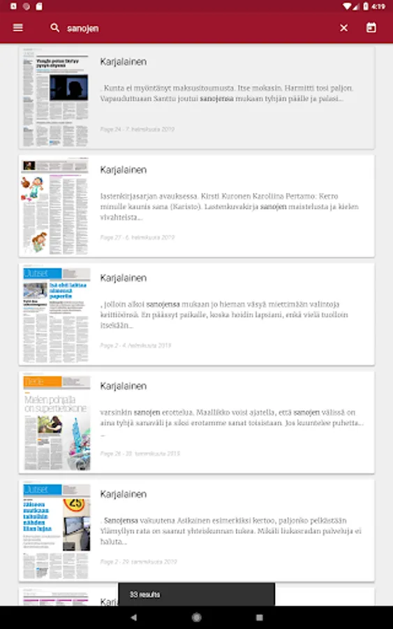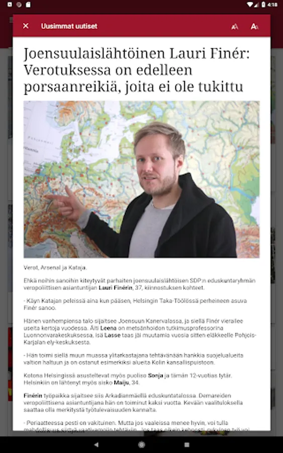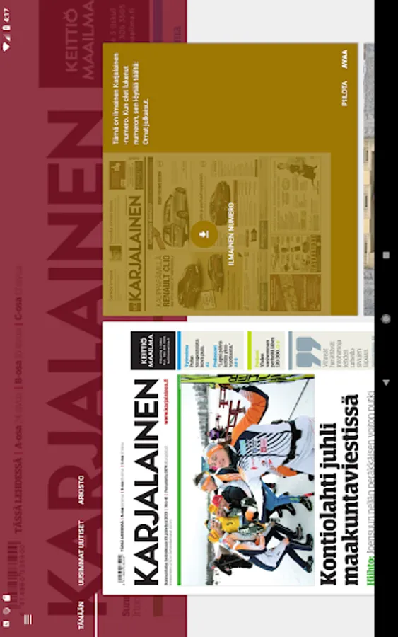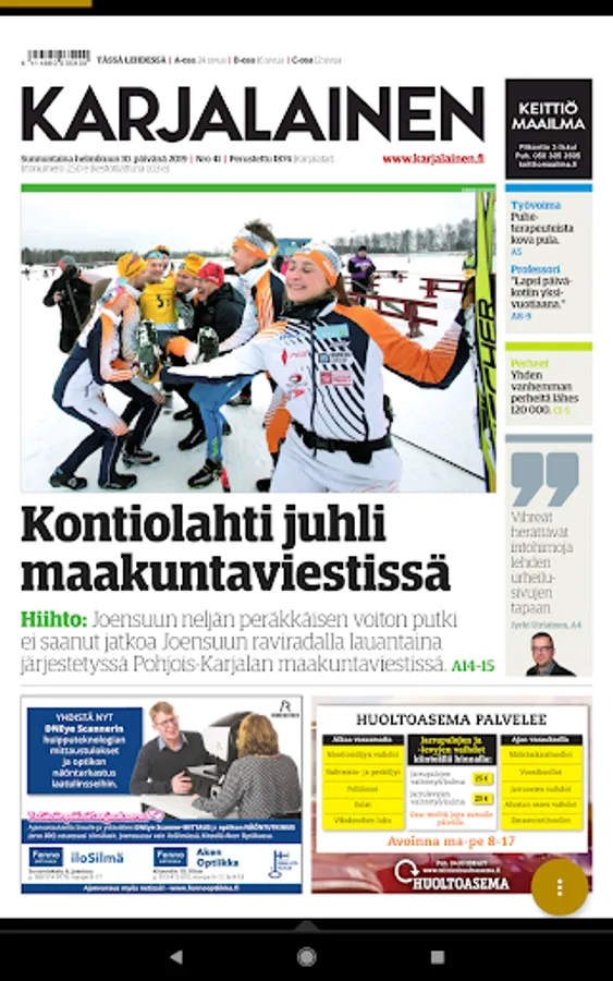 The Karelian mobile app for free on Android devices includes high-quality daily content and online news. The application optimized leaflet is updated with appendices in the early hours of Finnish time and online news is updated around the clock.