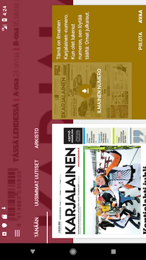 Access to the Karelian application belongs to all orders and is available to subscriber customers with a digital service username. Read more: https://asiakaspalvelu.karjalainen.fi/digituki/tunnukset