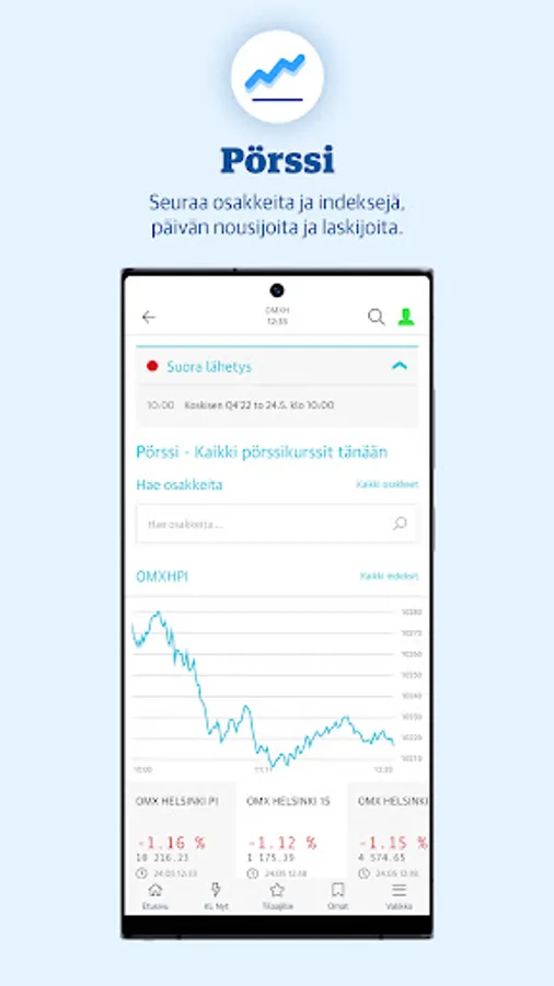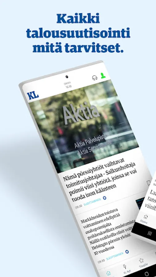 Kauppalehti is Finland's leading independent financial media. Kauppalehti opens up new perspectives and opportunities for success. Kauppalehti offers current and background news about the economy, the stock market, companies and society, as well as stock exchange rates and comprehensive investor services. With the application, you can also view stock exchange rates, the day's risers and fallers, the most traded shares, and create your own portfolio to support monitoring your own list.