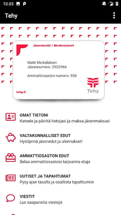 TEHY mobile app is tailored for members of Tehy, so you need TEHY member IDs to use it. It is connected to the TEHY membership register, which makes it possible to update member information as well as personalized content just for you.