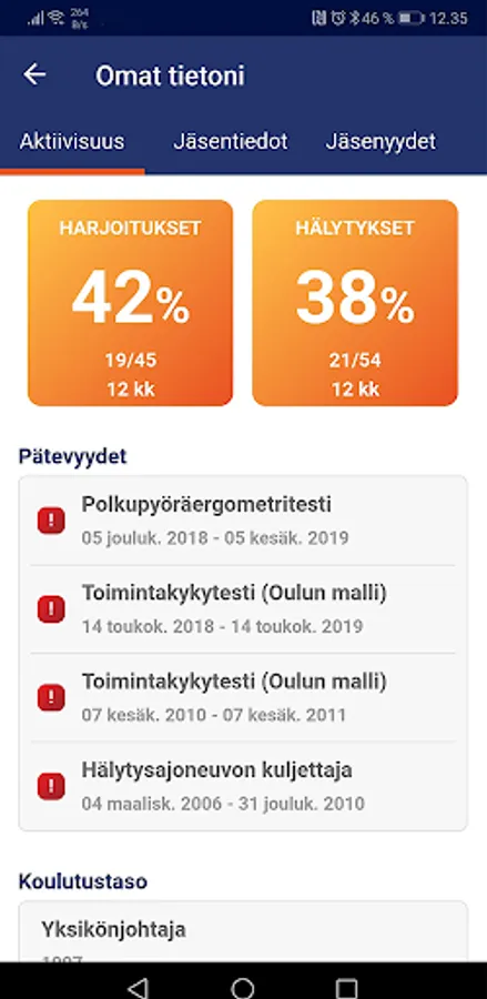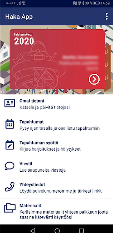 The HAKA - Safety Competence Management Database mobile application maintained by the Finnish Rescue Services Agency is tailored for all HAKA users. Download the mobile app and use it to maintain your own information. Under the license, you can create fire department events and pick participants. The application is connected to the HAKA register in the cloud service in real time.