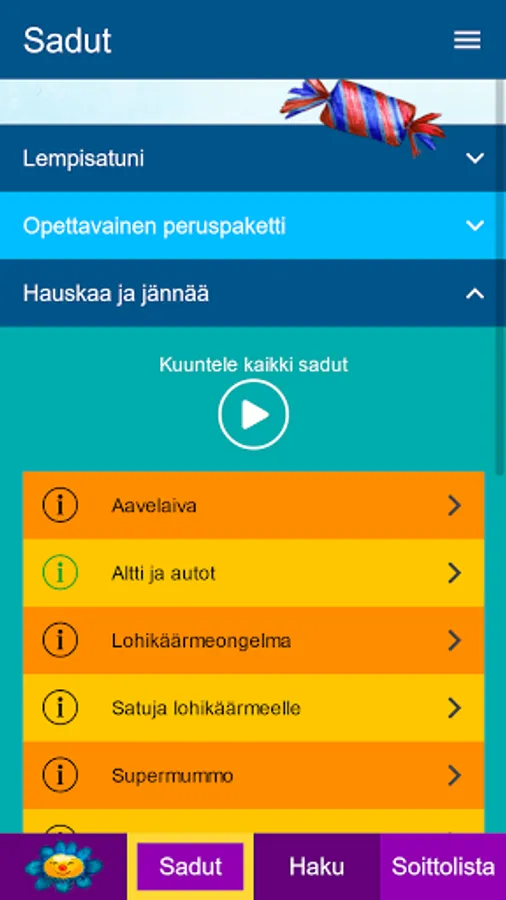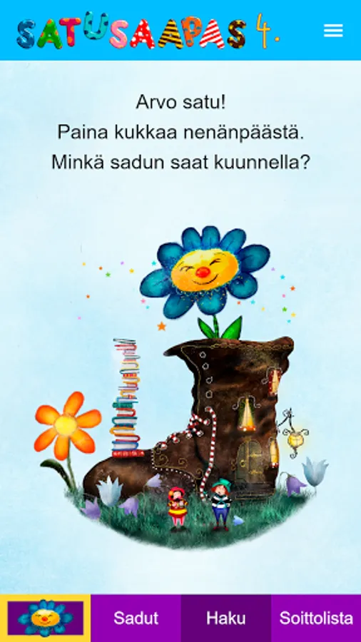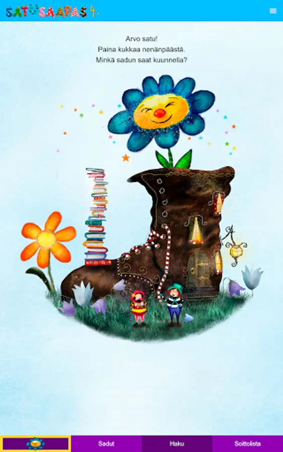 Jump into the world of a fairy tale and try Satusaapa! You can buy fairy tales in packs of 30 boots, or all 150 fairy tales at once. So far, four packages of 30 fairy tales have appeared: Satusaapas 1, Satusaapas 2, Satusaapas 3 and Satusaapas 4.
