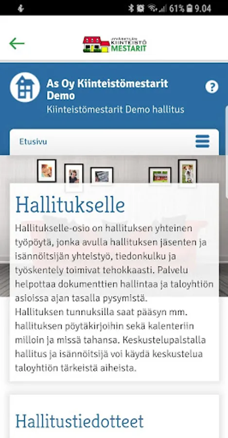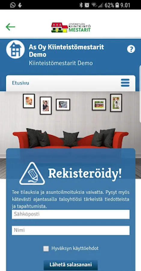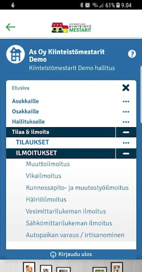 As a channel for e-business, we provide you with the opportunity to receive information and handle housing issues at an appropriate time, regardless of time and place. You will be able to make notifications and orders to your house manager at the most appropriate time and of course, regardless of location. We also provide you with the opportunity to get information about your living environment and access the information provided by one of your co-operation partners on a single sign-up centrally.