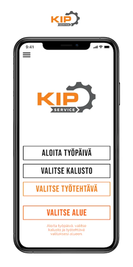 The application is tailored for the management of maintenance work in the outdoor areas of Kokkola Industrial Park (KIP). When the contractor starts work, he launches the application and determines what is being done, with what equipment, and in which predefined area. When a contractor leaves one area for another, he must activate the new area. If work is interrupted, the contractor must shut down the application. You can always go back to a job that is not in progress.