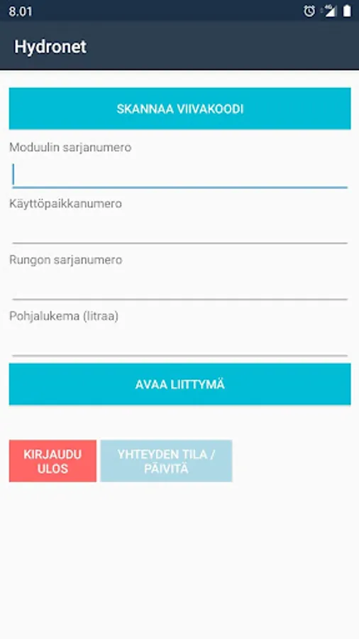 Koka Oy's Hydronet IoT water meter activation application. The application enables the provision of BMeters LR1, LR2, LR3 and LR4 modules to Digita's LoRaWAN network easily on a mobile device. In addition, the application can check in real time that the meter has been connected to the network.