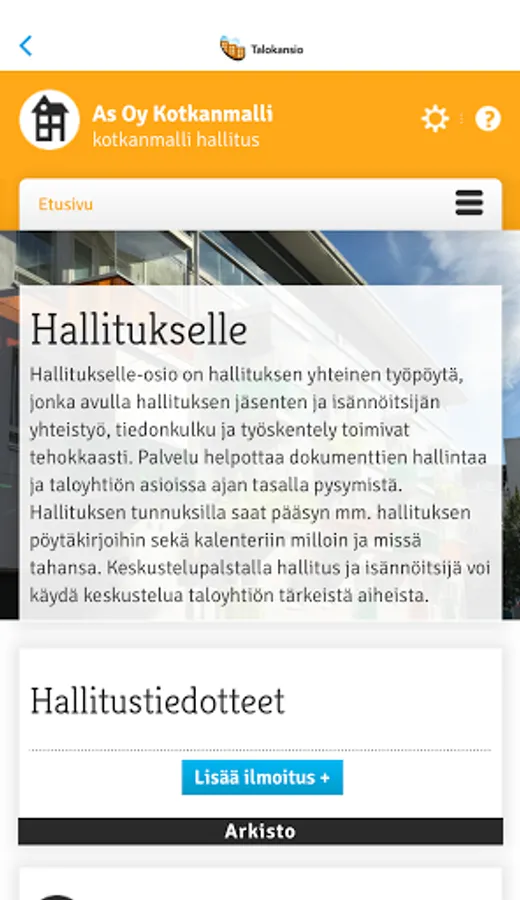 In our view, each housing association has its own community and each community has its own state of mind on how to develop the living comfort of the community forward. Therefore, the electronic transaction channel we offer can be expanded taking into account the needs of your housing association.
