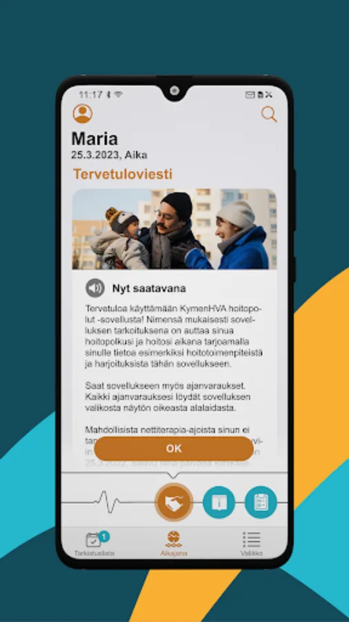 The KymenHVA treatment paths application provides the user with comprehensive information about the procedure, appointment booking and treatment instructions, which always accompany them. This information is displayed on the mobile device in chronological order. He receives various reminders and instructions to acknowledge and forms to fill in to support the success of the procedure and treatment. The information provided by the user is always visible only to healthcare professionals. In addition, through the application, you can inquire about non-urgent matters related to treatment and procedures.
