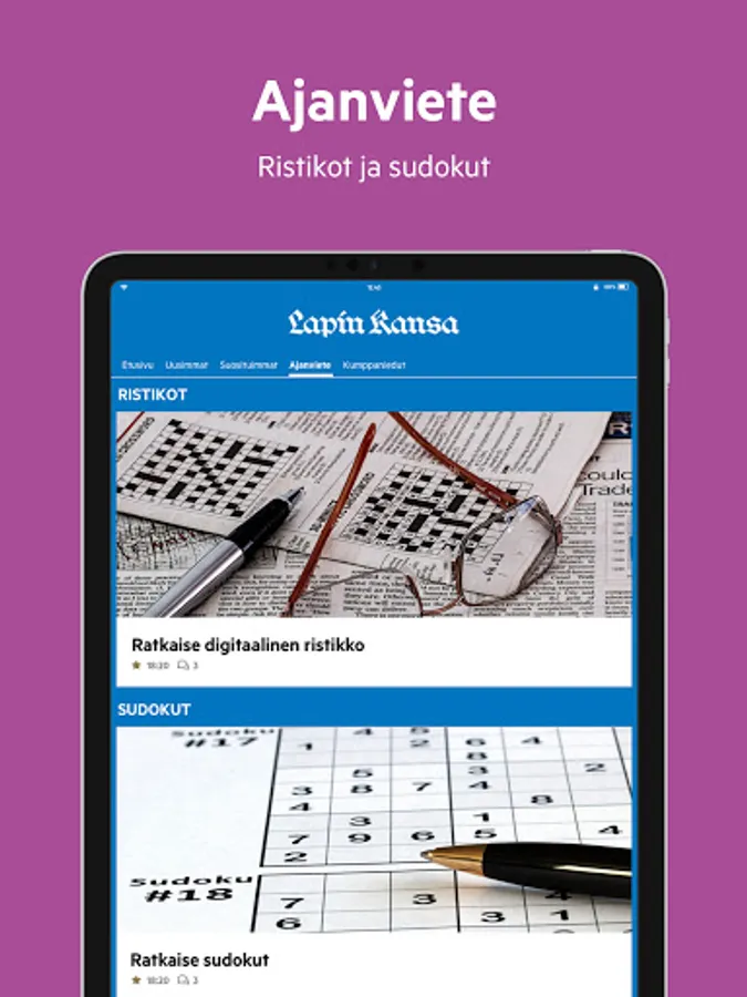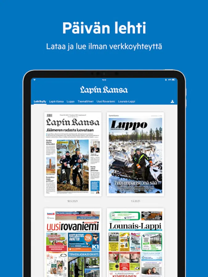 The people of Lapland are the voice of the people of Lapland in Lapland, Finland and the world. Download the Lapin Kansa application and as a subscriber you can read the constantly updated stream of the latest news, magazines, in-depth articles or Luppo stuff. If you want, you can receive notifications about the most important news on your phone. In the application you will also find entertainment, trellis and sudoku trees, as well as Lapin Kansa partner benefits.