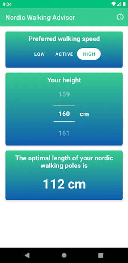 A quick and easy advisor for choosing Nordic walking poles' length based on your height and preferred walking speed