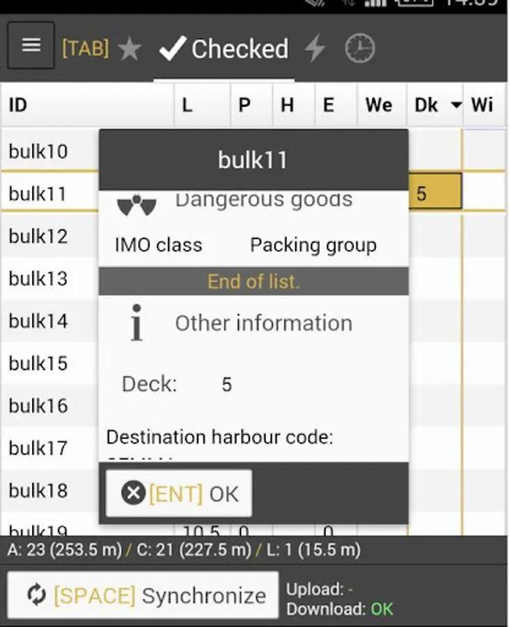 It gives online situation about booked units, checked-in units , loaded units and units which are on waiting list. Terminal personnel on ramp pick-up the unit from checked-in tab and enter the deck. Loaded units tab the personnel in the deck can enter the lane. Apps update loaded on vessel event back to Grimaldi Group cargo booking system. Deck and lane information is updated as well.