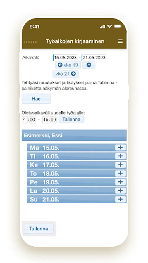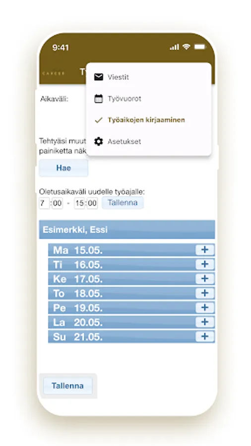In the application, you can browse and reserve offered work shifts, as well as make time and absence entries.