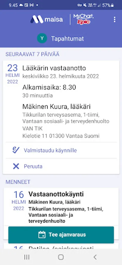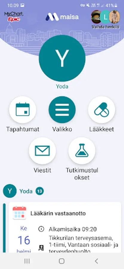 The Maisa application is available in Finnish, Swedish and English based on the set language option of the Android device. Maisa is used in the services of HUS Helsinki University Hospital, the city of Helsinki and in the services of Vantaa and Kerava wellbeing services counties as well as Kauniainen (as part of the Western Uusimaa wellbeing services county).