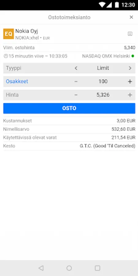Open a Trader customer at www.mandatumtrader.fi before using TraderONE or TraderGO. You can also open a customer relationship directly via the link in the application. You need Finnish online banking IDs to use the service.