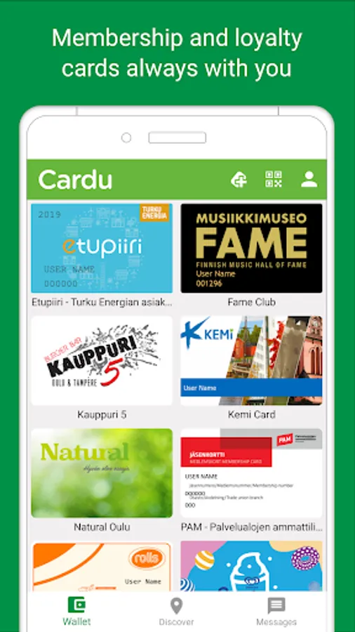 Member cards are generally delivered through the membership register. If you already have the Cardu app and an account, you get the card directly to your Wallet. Otherwise, you will receive an SMS or an email with a link to the app store. After you install and start the Cardu app, you will see the member card delivered to you. It’s important that you save the card to your Wallet, so that you can find it easier later and enjoy the benefits.