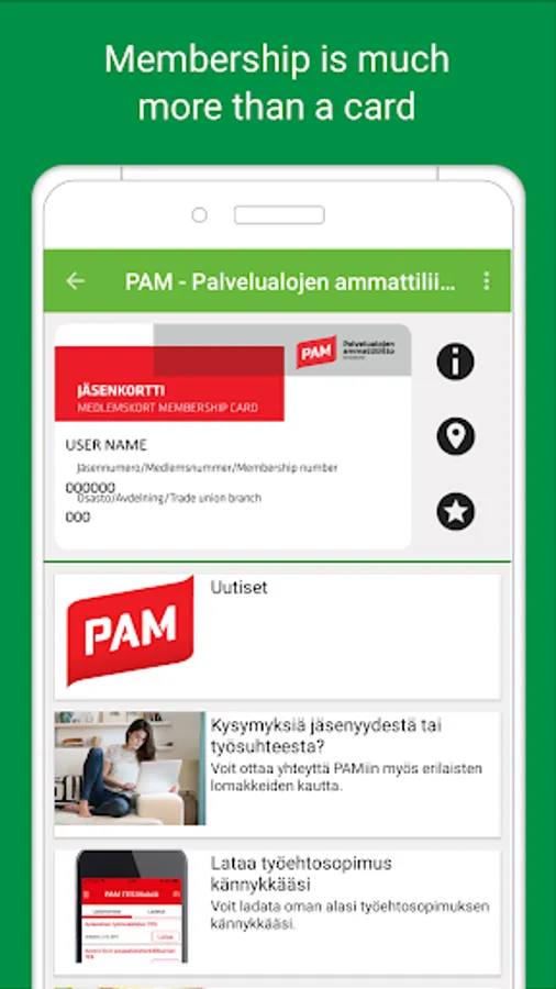 The member cards in Cardu include information that should be available to the members easily and quickly. The member card may, for example, include instructions, news and information about events.