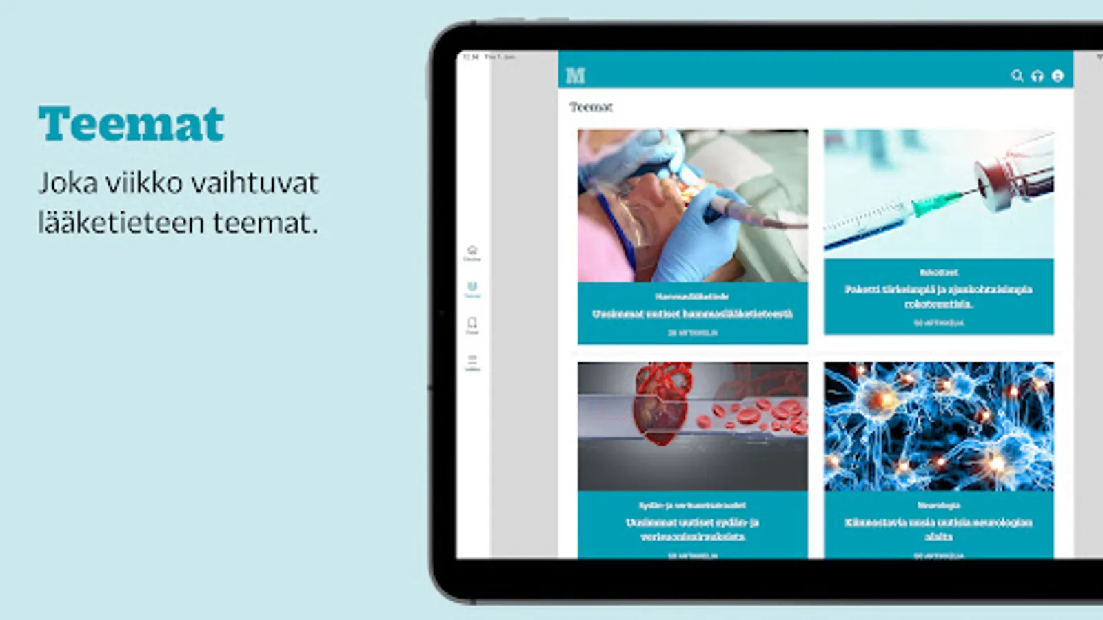 Media News is a fast, up-to-date and versatile media for health professionals. Finland's only independent health care media offers current and backgrounded health care news and phenomena in a varied and reliable way every day of the week. Theme articles address different areas of therapy. Topics such as sote, working life, health policy and the health economy are our most read content.