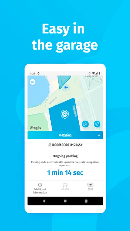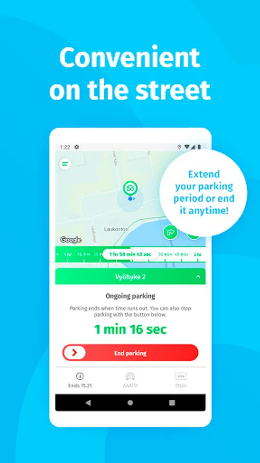 • On the streets, you park with the application without coins or cards, parking fees will be charged to your payment card afterwards.