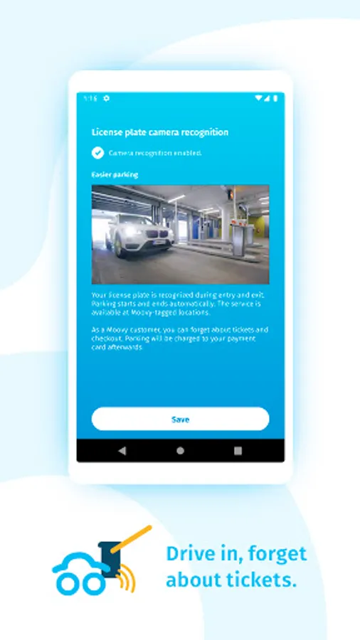• As a Moovy customer, in parking garages you drive in and out without cards, tickets or queuing at checkouts.