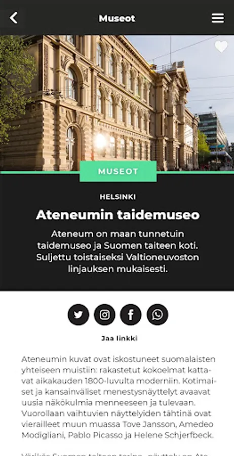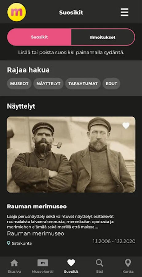 In the new Museum Card app, you will find information on all of the 300 Finnish Museum Card museums. Plan your museum visits with the help of the map search or create your own Favorites list.