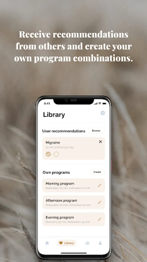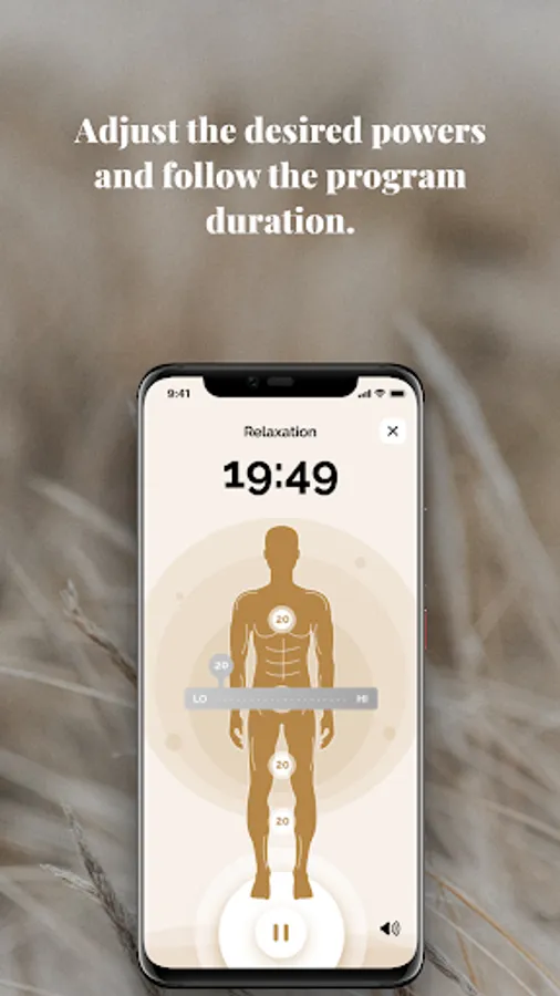 You can use the mobile application to easily pick among 10-41 minute programs for relaxation, activation, or recovery. Take a power nap during a busy day or choose a relaxation program for sleep problems or stress. You can use activation programs to boost your metabolism, increase your alertness, or warm up your muscles. Recovery programs are perfect after sports and for reducing swellings, but also for sleep.