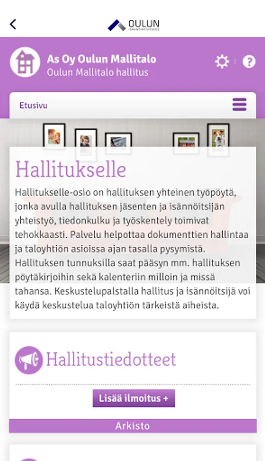 In our view, each housing association has its own community and each community has its own state of mind on how to develop the living comfort of the community forward. Therefore, the electronic transaction channel we offer can be expanded taking into account the needs of your housing association.