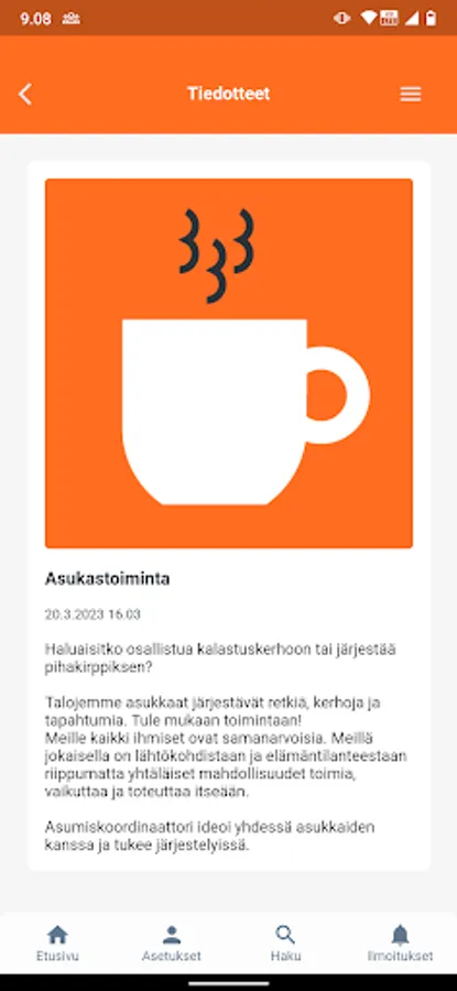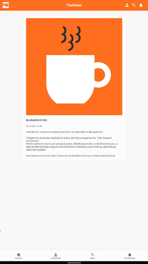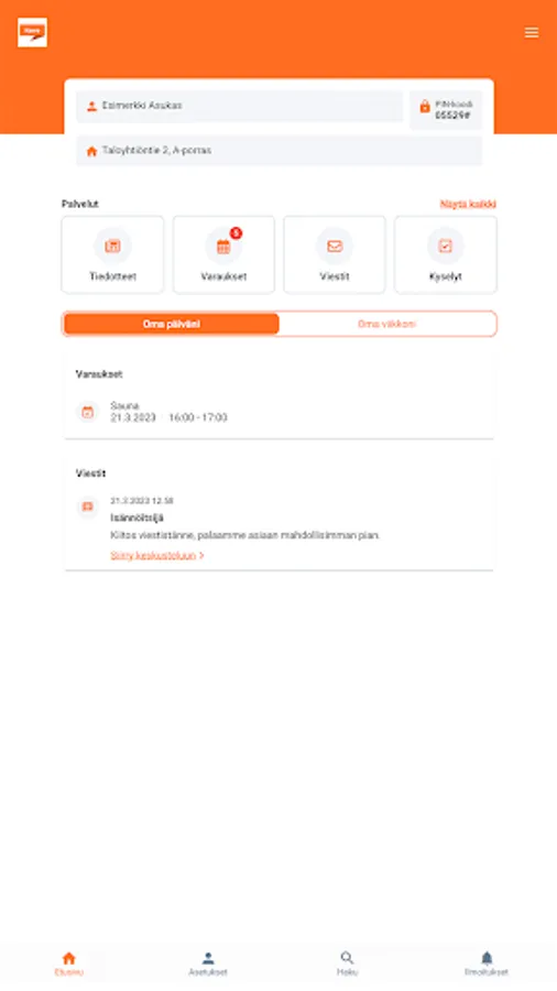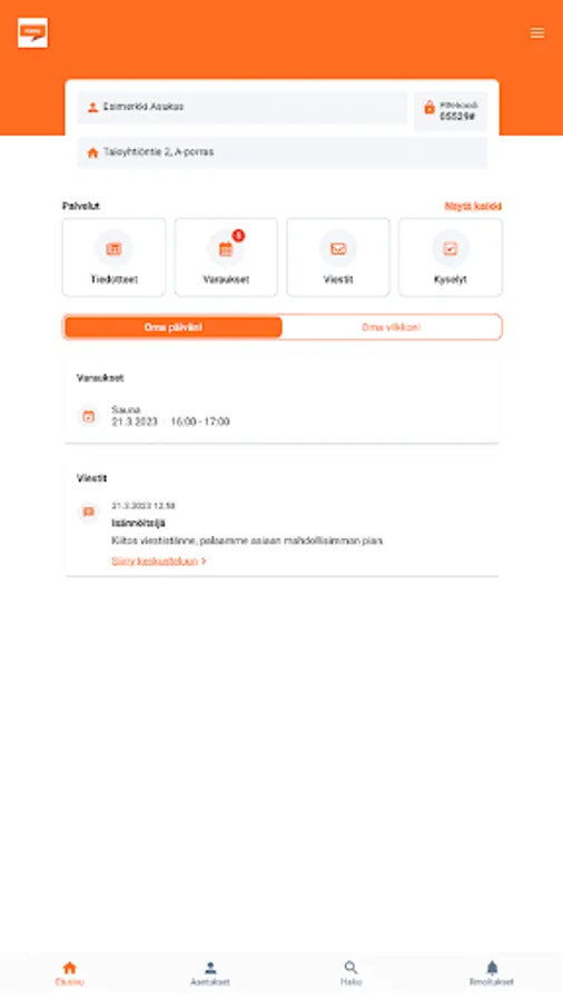 Kerro is the application for residents of Settlement apartments, which enables a new kind of living experience. The application has been developed with the help of feedback received in numerous resident workshops. In them, they learned that Setlementtiasunnot is home to wise and warm, critical and opinionated, sympathetic to the weaker side, wonderful people for whom Setlementtiasunnot wants to offer a great everyday life. There is power in cooperation!
