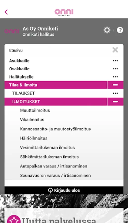 - Reserve or cancel parking spaces and sauna shifts