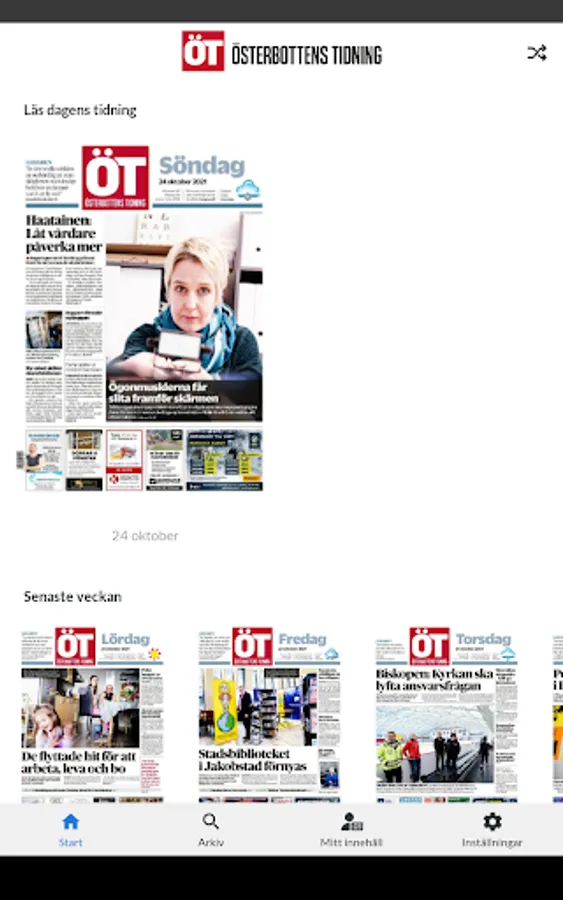 In Österbottens Tidning's app, you can read the e-magazine that is published every day of the week - even on Mondays! The e-magazine ÖT Måndag is only published digitally and is exclusively designed to be read in the app.