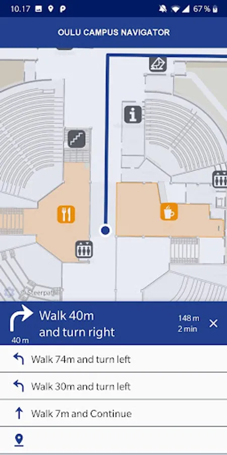 Oulu Campus Navigator is a mobile navigation and indoor positioning application for university campuses in the city of Oulu, Finland. The application is free and open to use for everyone and it does not require any login information.
