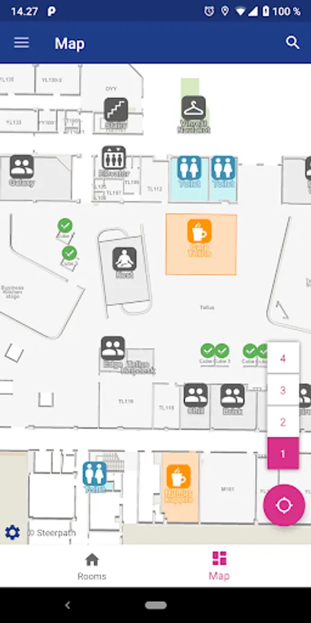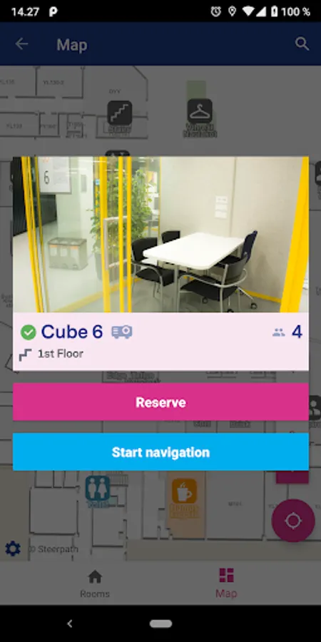 Cella includes indoor navigation to find the room you have reserved, and to see where rooms are available around university campuses.