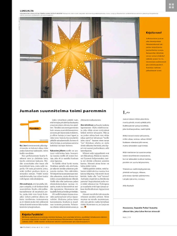 Day Male is also available in print and audio magazine at kauppa.srk.fi. Man's Daily online magazine can be read at paivamies.fi.