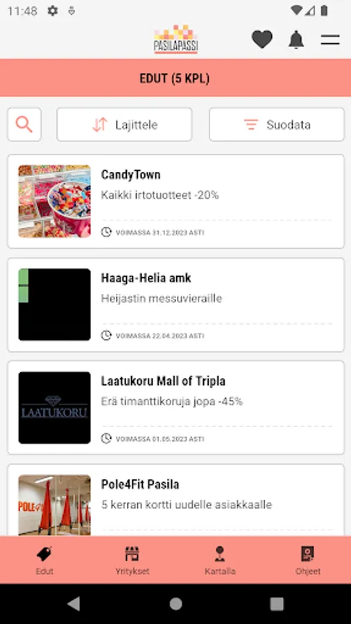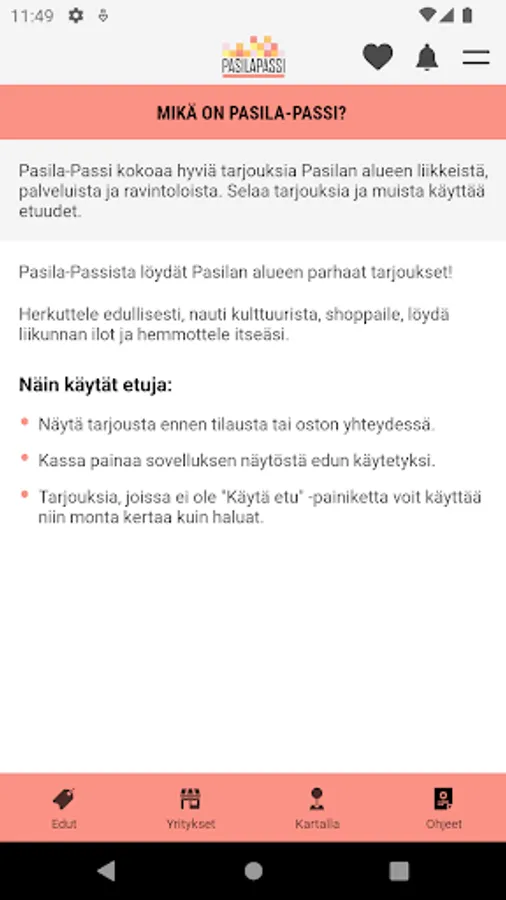 PasilaPassi is an application where you can find Pasila's best benefits, offers and companies as well as services. PasilaPassi brings together valuable benefits for shops and services in the Pasila area and makes it easier for you to find them! The application is aimed at all visitors and residents of the Pasila area. PasilaPassi is published by Haaga-Helia University of Applied Sciences as part of the PasilaHUB project, which develops the Pasila area. More information pasilapassi@haaga-helia.fi