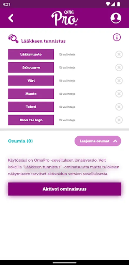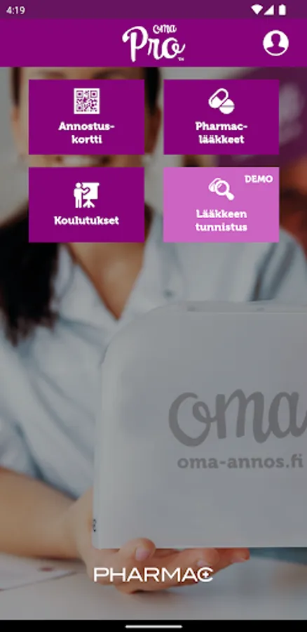 OmaPro is a mobile application developed by Pharmac Finland Oy, which complements Pharmac's services promoting medication safety and the smoothness of everyday life for caregivers, relatives and consumers. OmaPro conveniently brings Pharmac's Oma-annosservice to your phone.