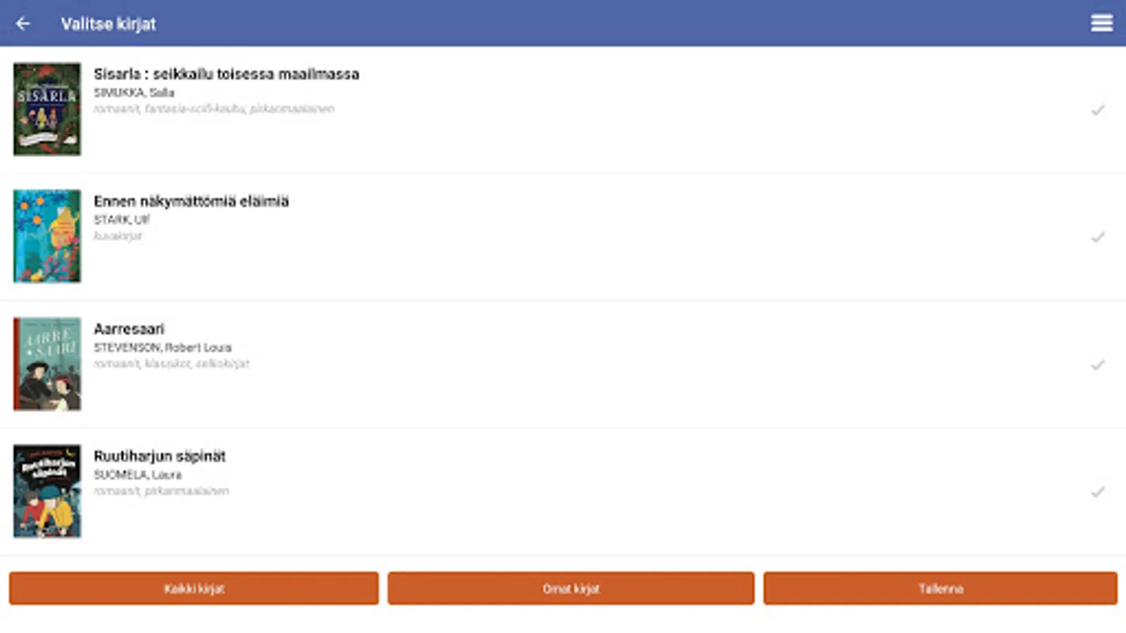 It is possible for a graduate of the custom reading diploma to listen to some of the books as audiobooks. Audiobooks can be found in the collections of PIKI libraries or in Celia's audiobook service for the disabled.