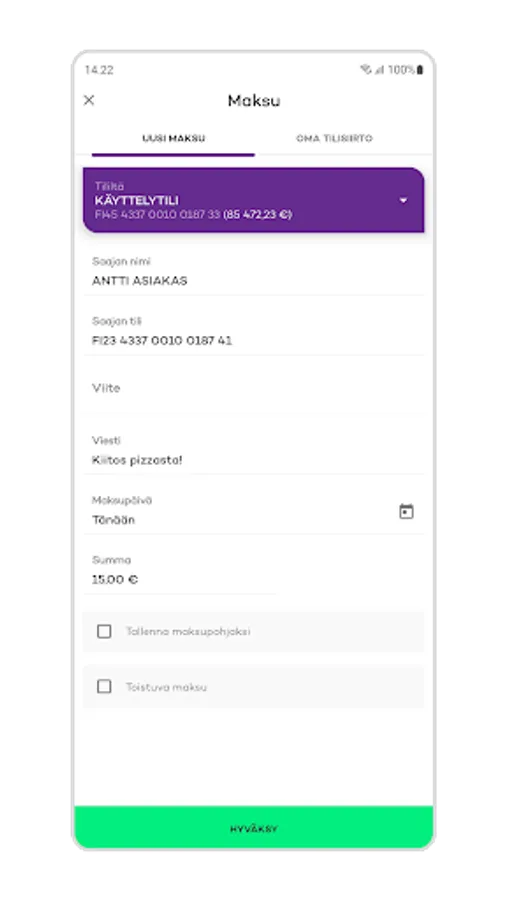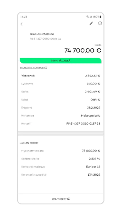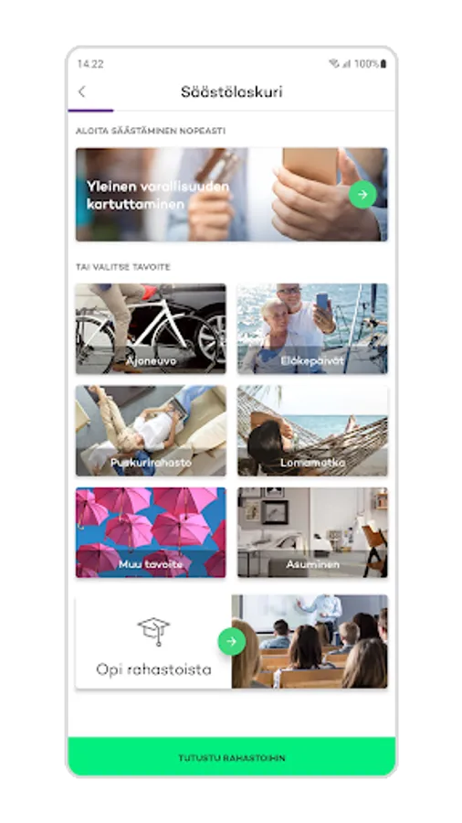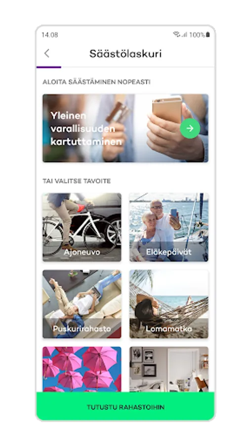 • You can also start target savings, for example for a new car or apartment, and track your savings.
