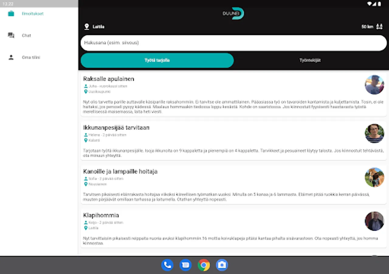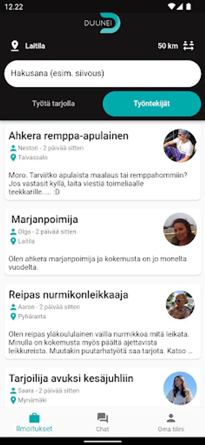 The idea to develop the Duunei app was triggered by concerns about increased youth exclusion and unemployment. Not even summer jobs have been enough for everyone. There was also concern about the need for older people to get help with even the smallest chores of everyday life. Not all homework requires a professional degree or even a company. Helpful pairs of hands are always needed.