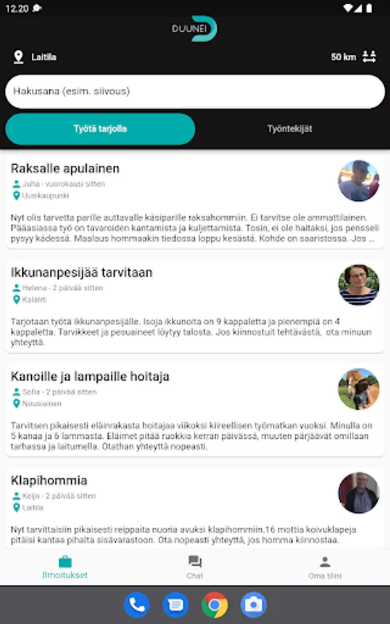 Duunei is like a bulletin board for your local store - you can offer your skills to those who need help and you earn with your skills.