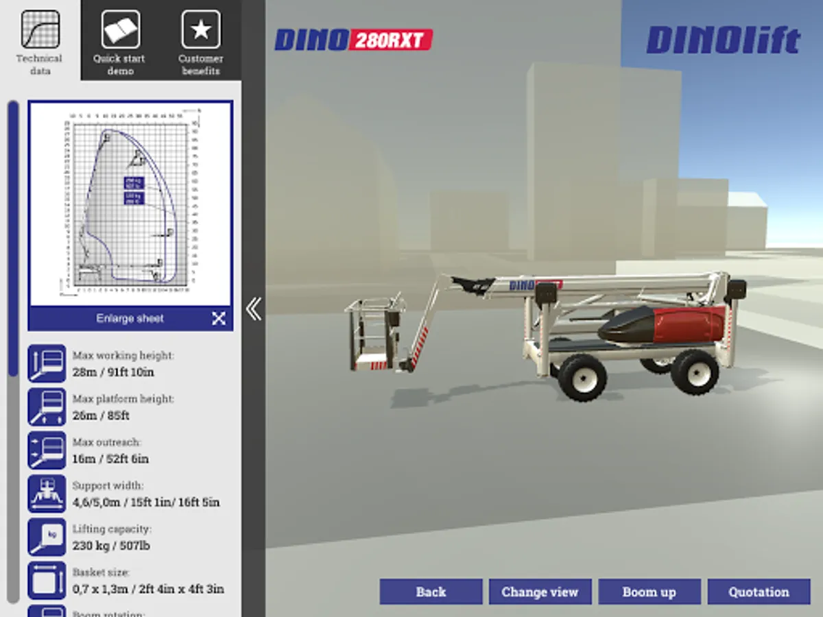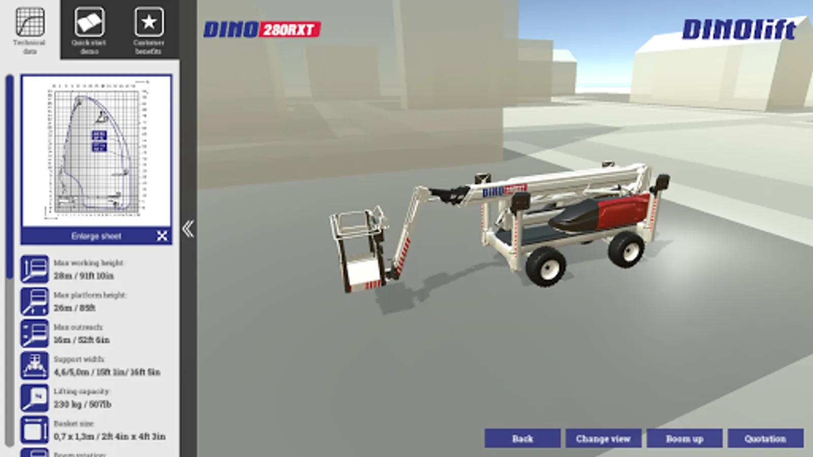 Dinolift virtual presentation application. See how Dinolift boom lift works. You can also see how machine is started and how the maintenance is done.