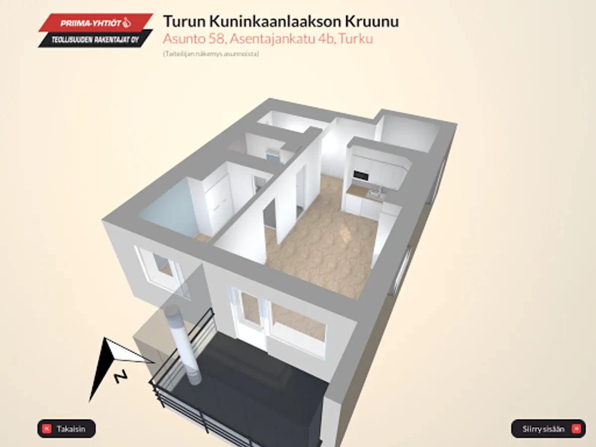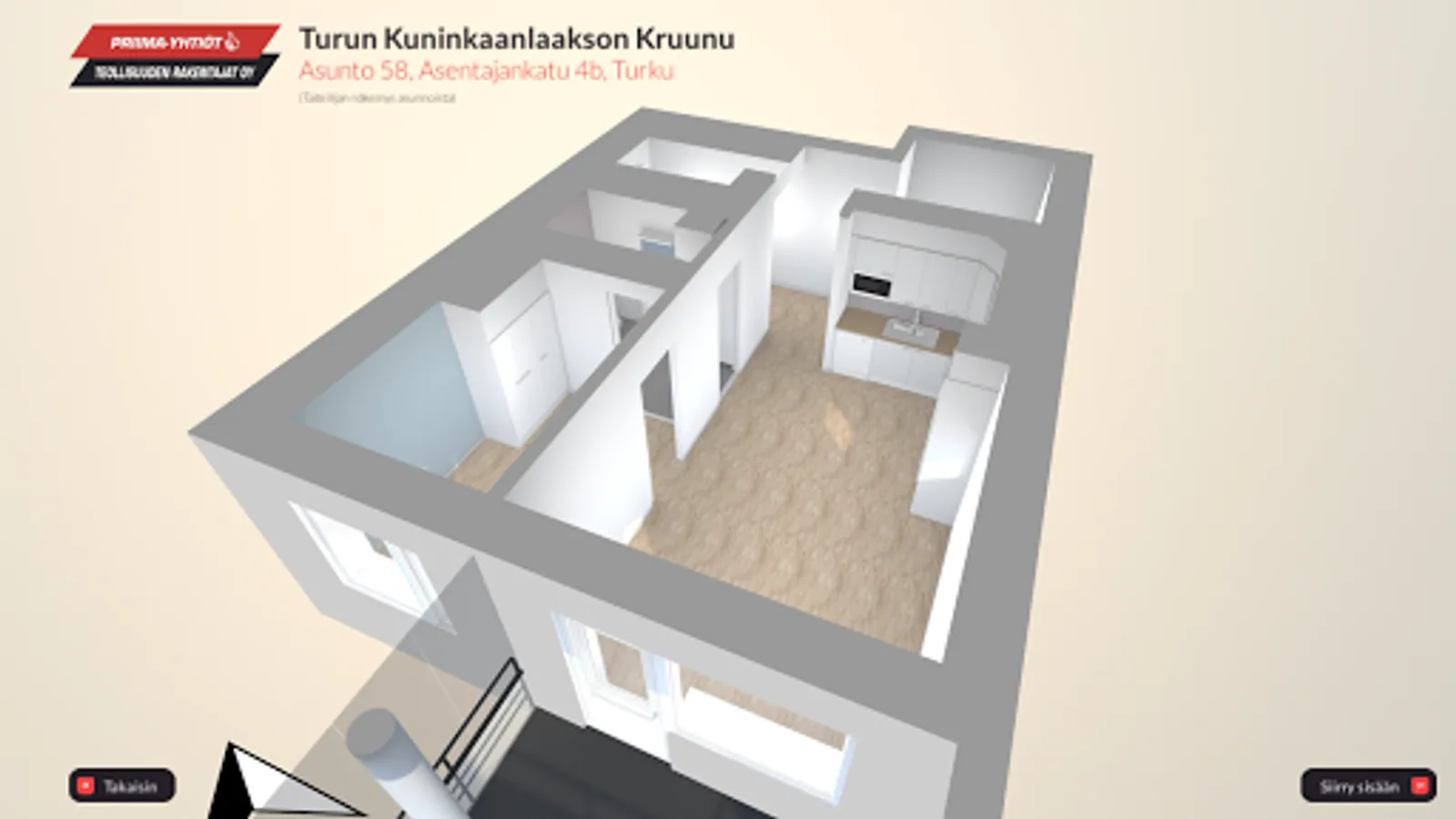 Asunto Oy Turun King's Valley of the Crown virtual presentation of the apartment. You can explore the various homes and experiment with different surface materials.