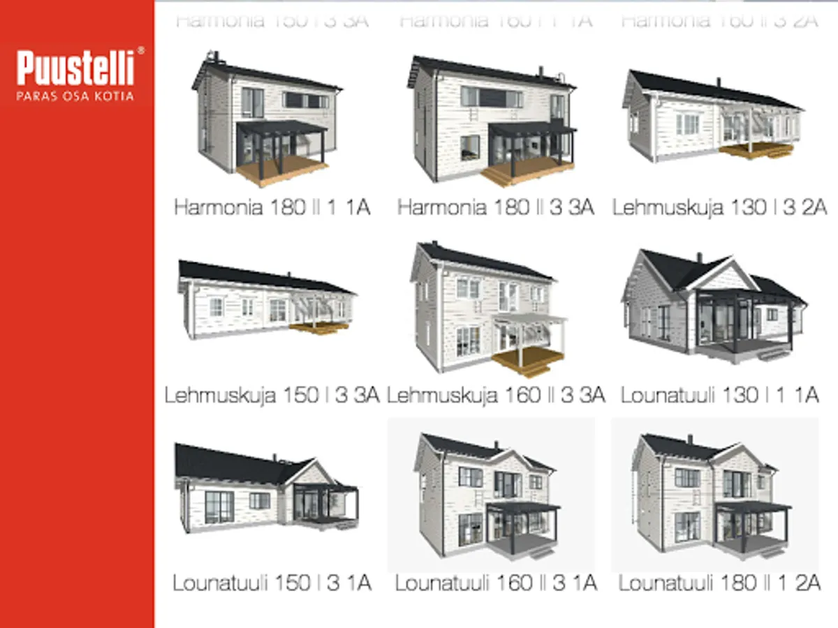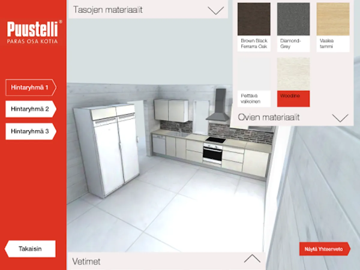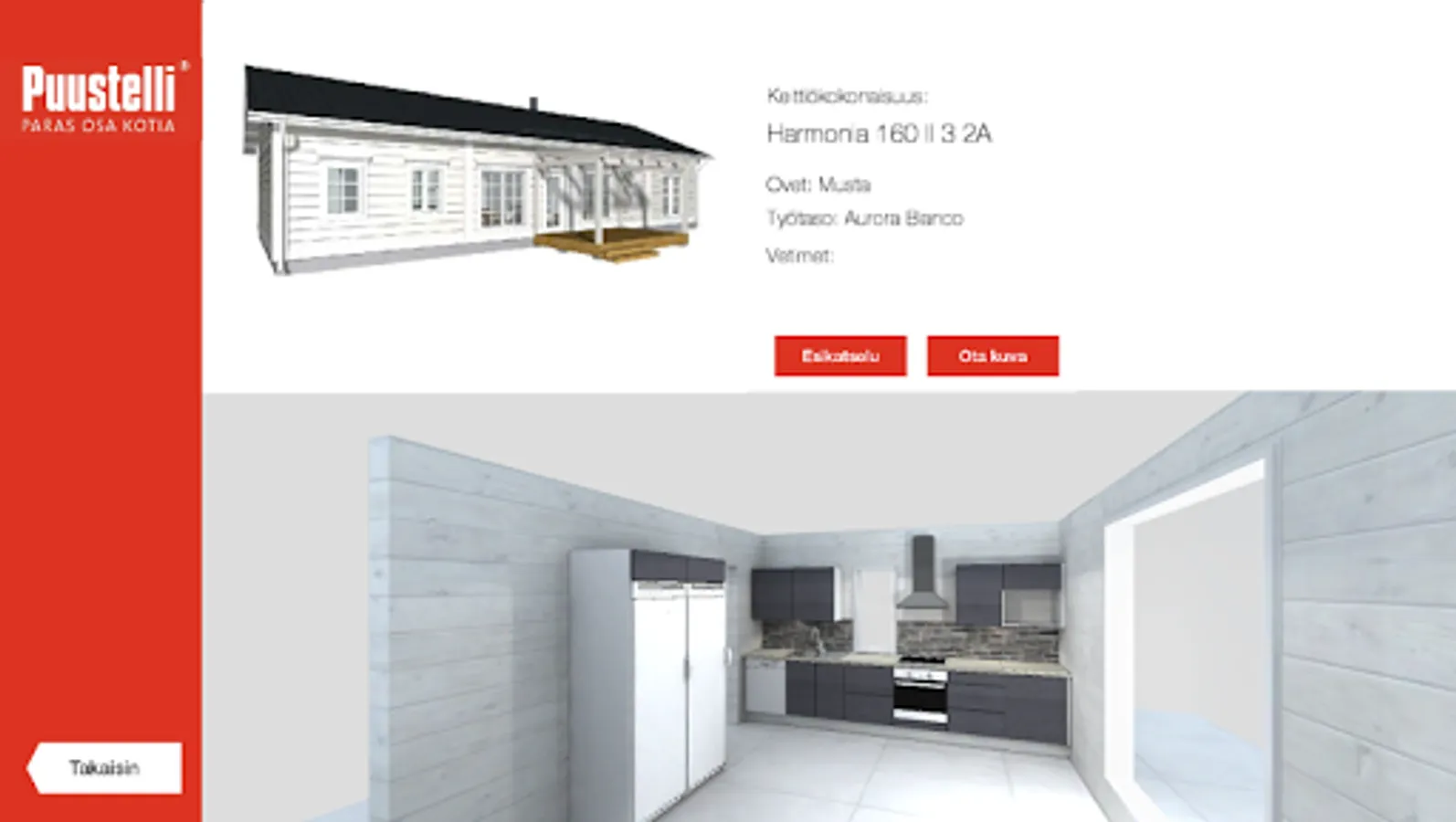 Puustelli kitchens and Honka prefab models of presentation of the application. You can view different kitchen designs and experiment with how different the level of the door and the materials look like in the kitchen.