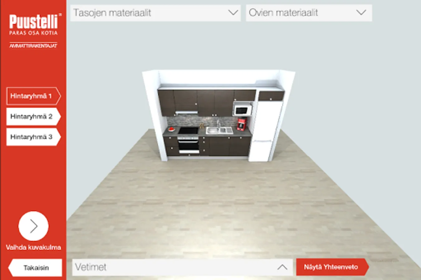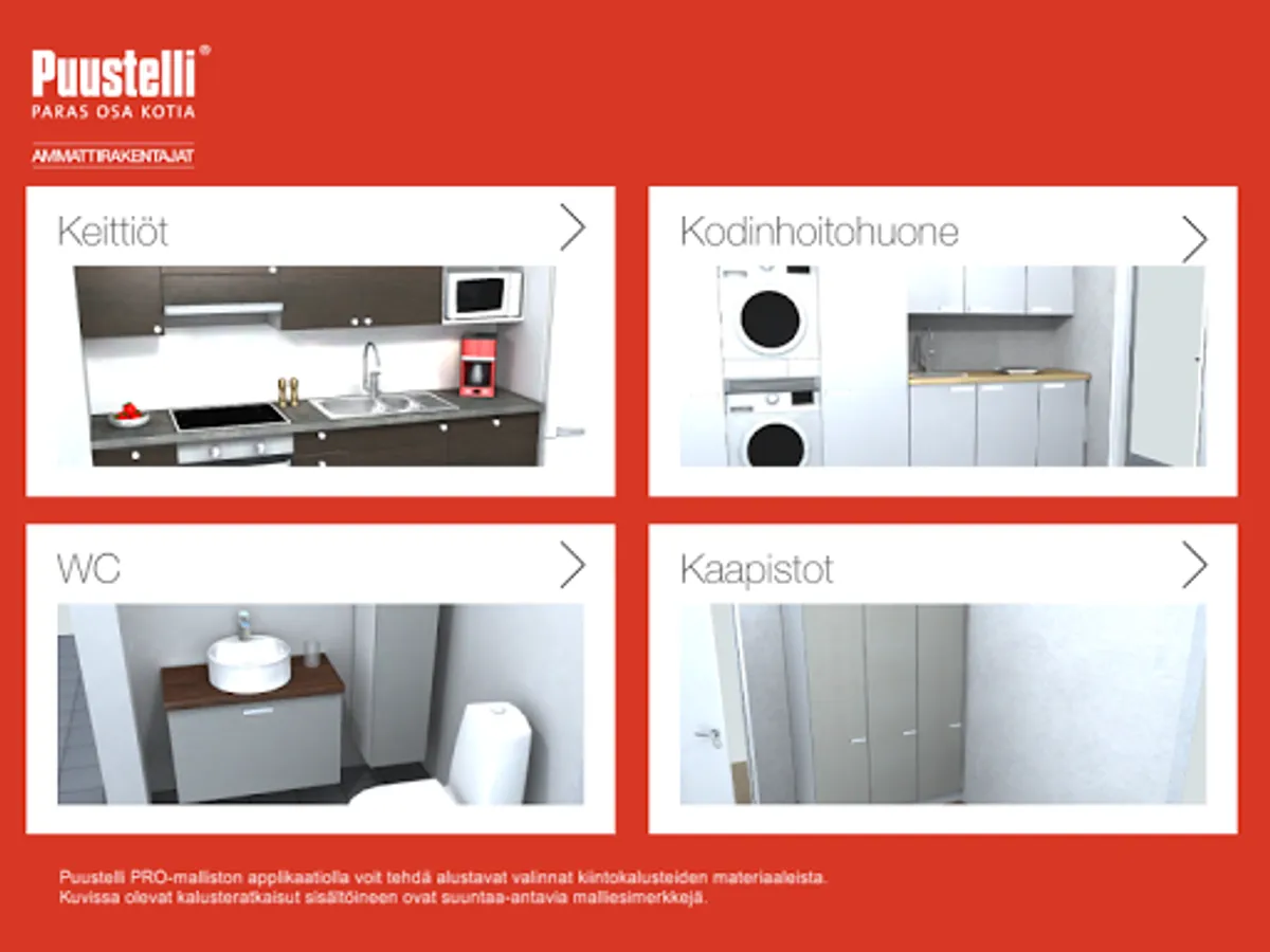 Puustelli PRO Selection Guide for professional builders. You can discover a variety of kitchen designs and try out how different door and worktop materials appear in the kitchen. In addition, you can try different puller models.