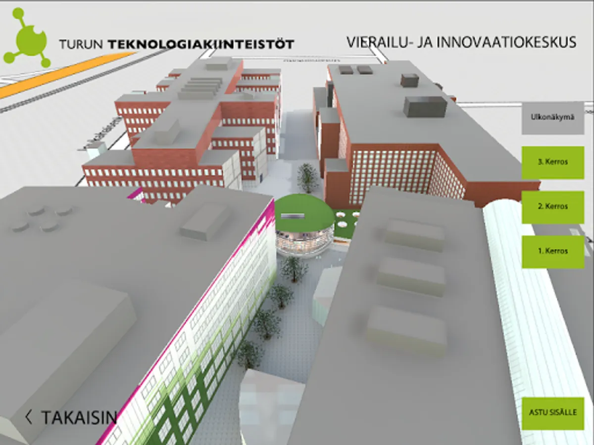 Visits and innovation center will house a showroom, where companies can build their own experiential world, leads the visitor by its manufacturing process or to launch their products impressively. Showroom In addition to the visitors' center will be urban area, which presents a variety of projects in the city. They will also discuss in Turku universities and their cutting-edge research.