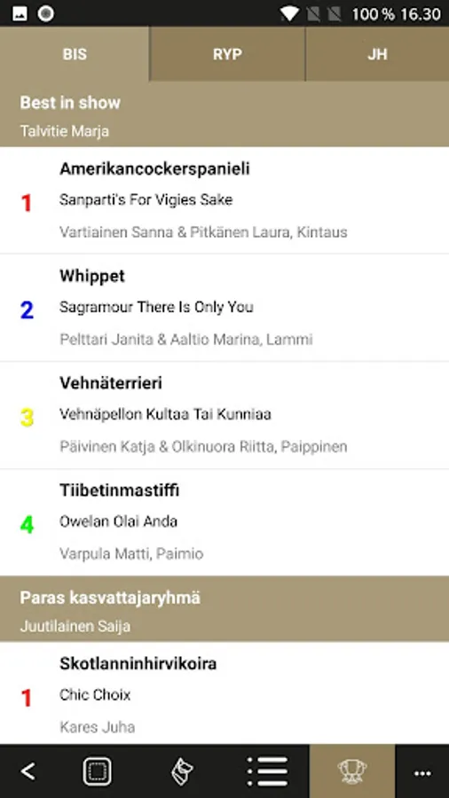 - Electronic exhibition catalog, from which the data retrievable based on the circumference of the breed or