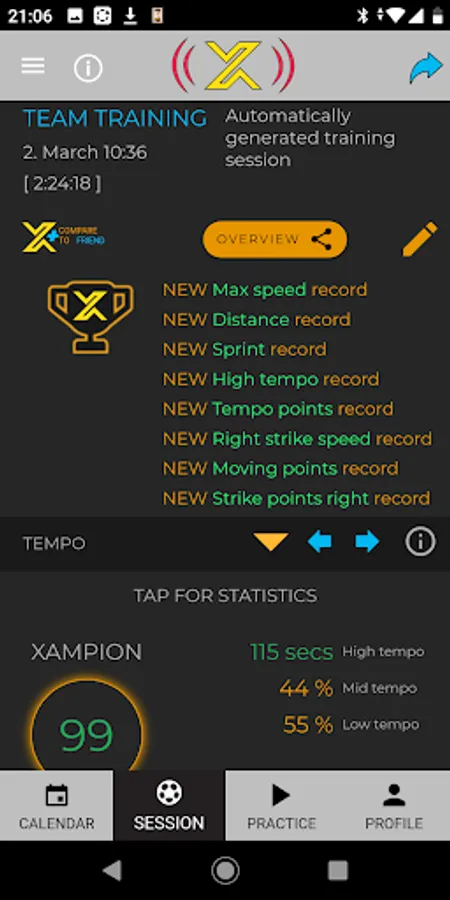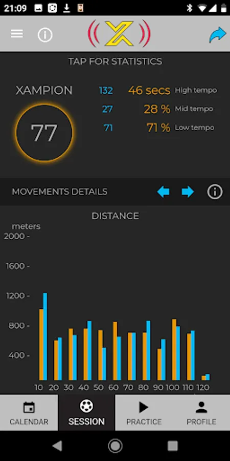 Xampion provides all this information and much more about your movements in matches and trainings. Compare your current and past performances and get confirmation for your progress.