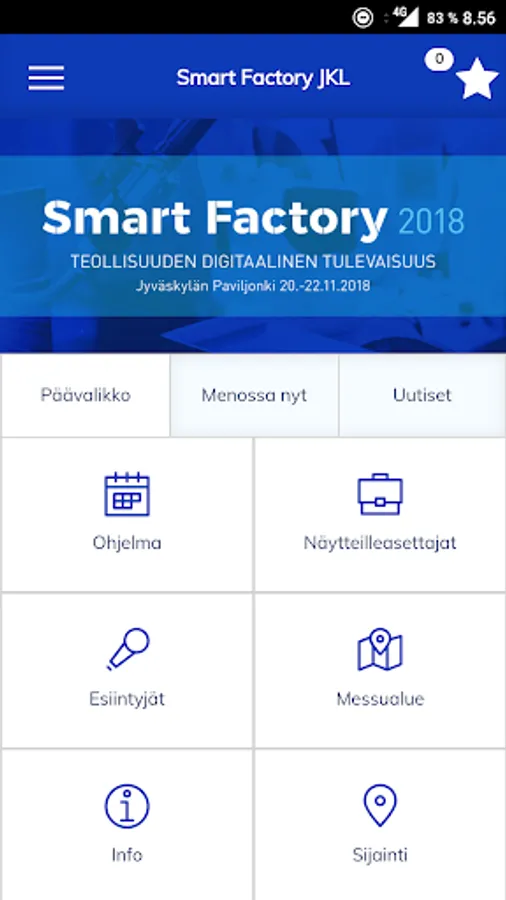 Contains information about programme, speakers and venue for Smart Factory 2018.
