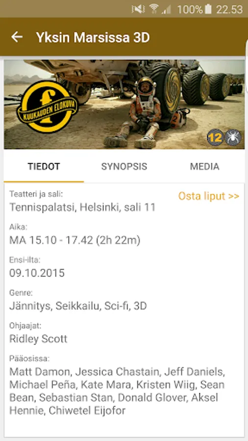 Finn Kino is not the author of this program, and is therefore responsible for the program and its activities. The program of film and show time information as well as the source of the images have been used www.finnkino.fi site content.