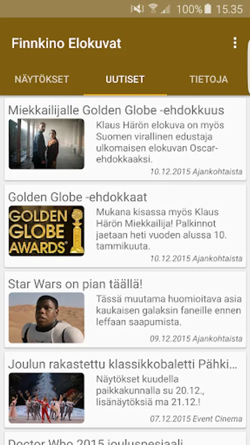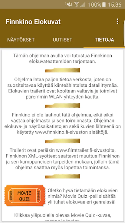 With this program you can discover Finnkino movie theaters to offer.