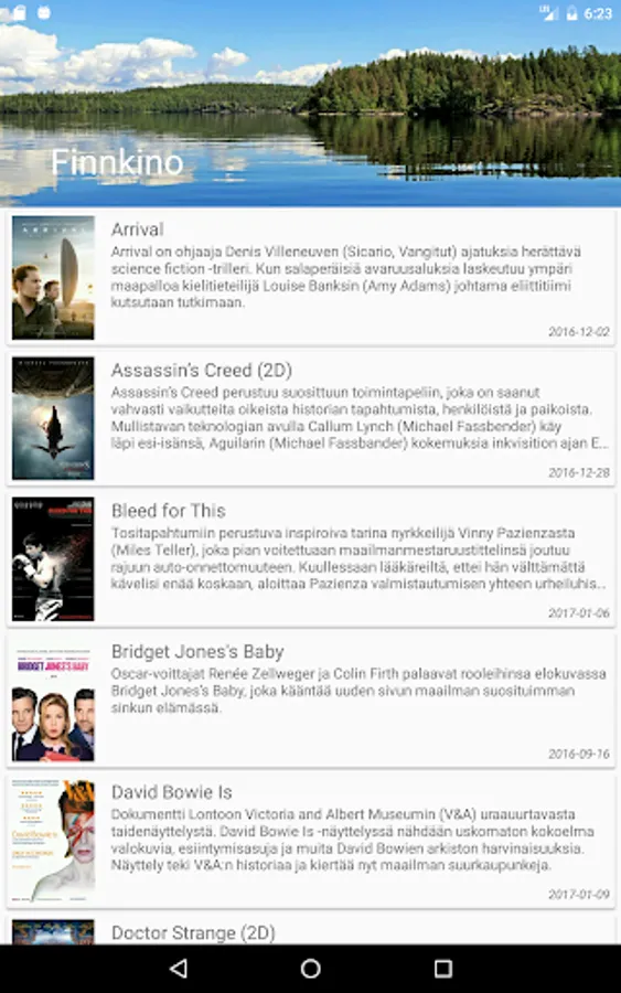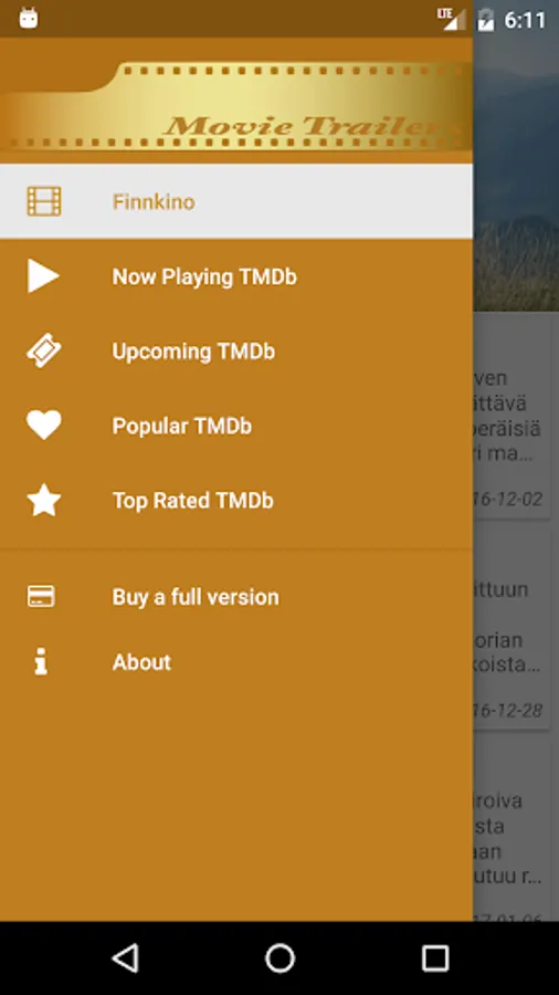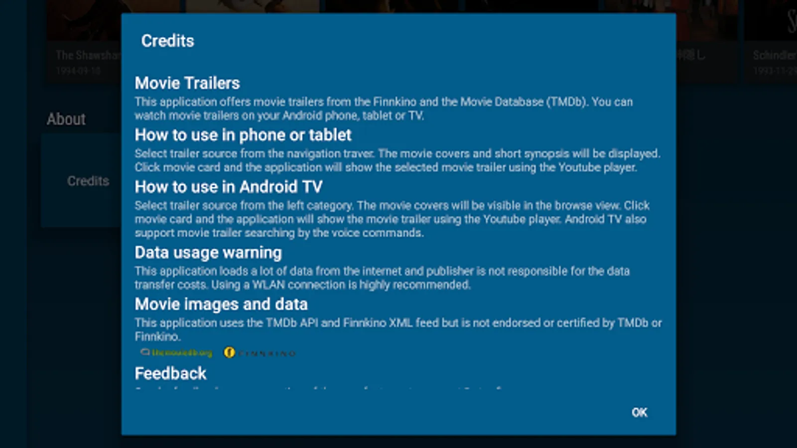 This application offers movie trailers from the Finnkino and the Movie Database (TMDb) without any ads. You can watch movie trailers on your Android phone, tablet or TV.