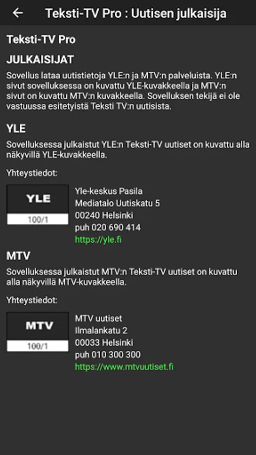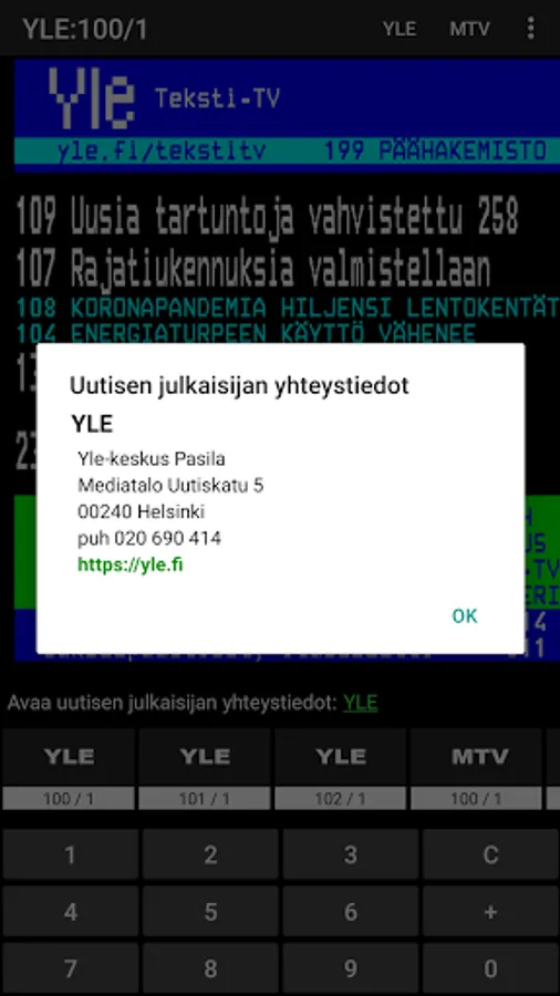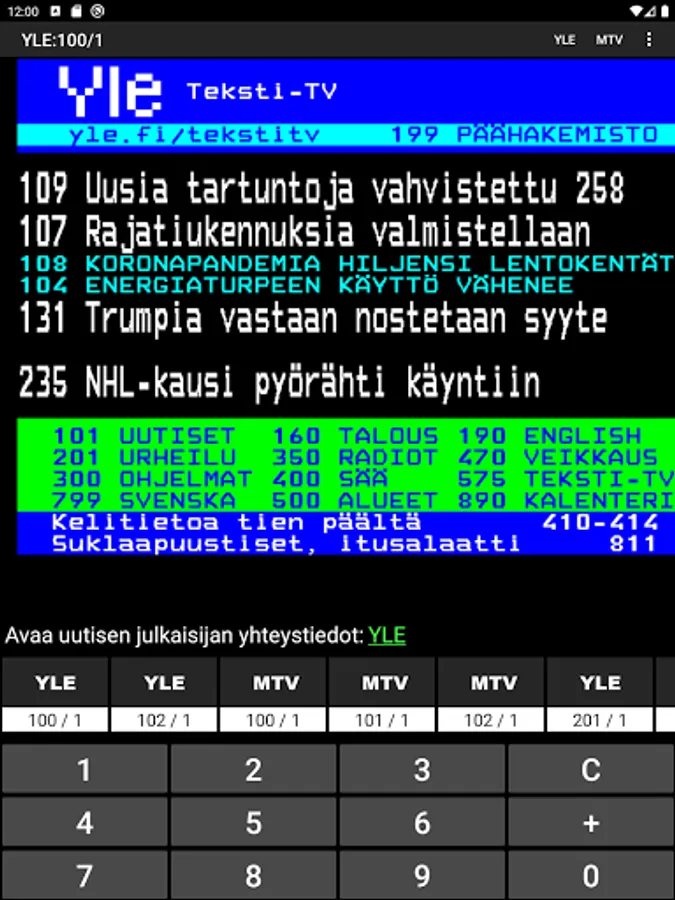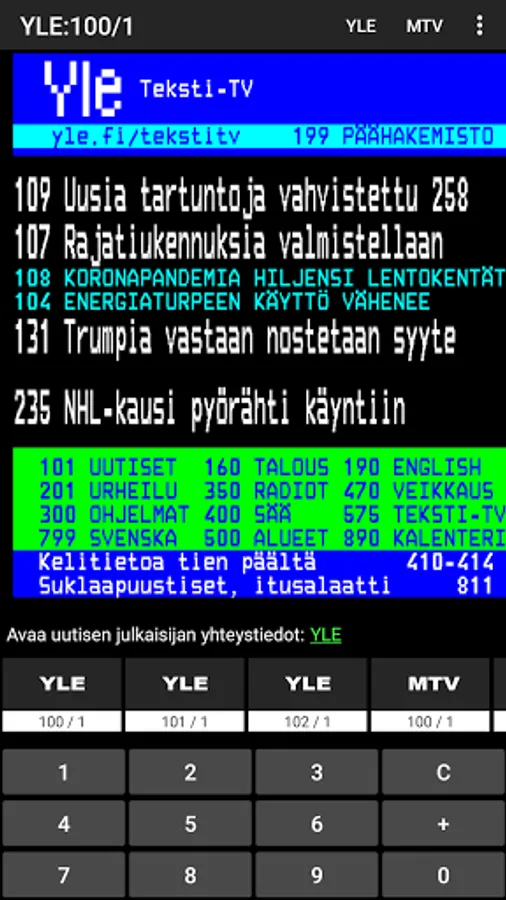 YLE and MTV's Teletext supply neatly in one view.