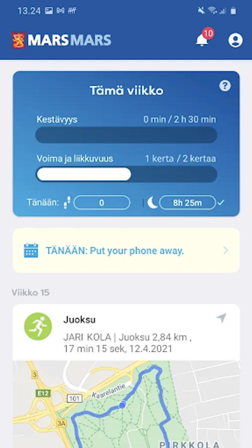 Defense Forces Mars Mars-mobile service will guide you to follow their own and safe, your eating habits, rest and recovery, as well as to challenge yourself in different areas of well-being. Mars Mars also allows you to start training programs drawn up by professionals and encourages a permanent change towards your friends.